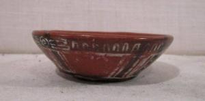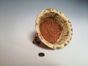 ANTIQUE PRE-COLUMBIAN DECORATED ORANGEWARE BOWL 3-1/4" DIA