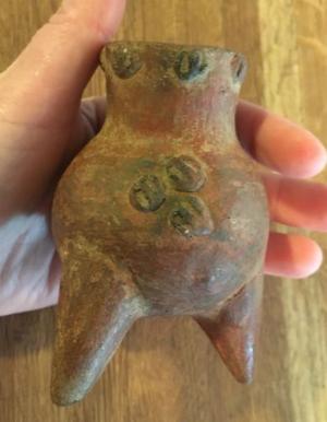 ANTIQUE POTTERY-PRE COLUMBIAN-3 LEGGED POT 4.5”