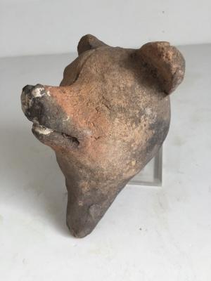 Vintage Antique Pre Columbian Pottery Boar Pig Head Object Sculpture Figure