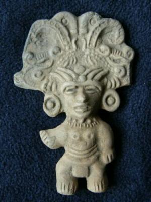 Pre Columbian Clay Standing Statue Flat Back Flat Bottom Stand