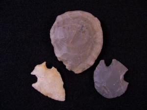 THREE AUTHENTIC MIDDLE WOODLAND CHERT ARTIFACTS FROM THE GRIZZELL COLLEC.