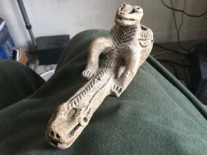 Old Antique Pre-Columbian Carved Artifact Man Animal Stone Rare Native American?