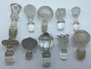 LOT OF 10 ANTIQUE AMERICAN BRILLIANT CUT GLASS STOPPERS DECANTER WHISKEY BOTTLE
