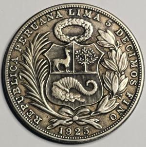 1925 PERU 1 SOL KM218.1 TONED VINTAGE ANTIQUE LARGE SOUTH AMERICAN SILVER CO