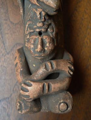 Pre-Columbian God Figure & Lizard Serpent CLAY POTTERY Totem Ceremonial FLUTE