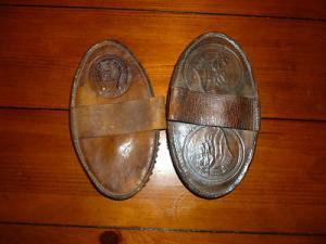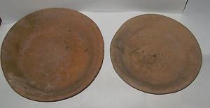 Pre-Columbian Mexico - 2 TERRACOTTA FLAT BOTTOM FLARE SIDE BOWLS / PLATES b16