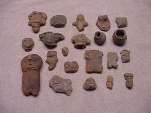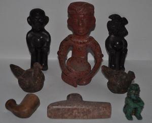 Pre-Columbian Style Mayan Pottery Clay Lot 1 Birds,Pipes,Stone,Figures,Malachite