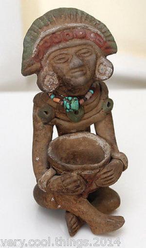 Small Original Authentic Pre-Columbian Aztec Pottery God Figure Statue No Res.
