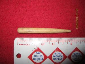 VERY NICE 3" POLISHED BONE AWL ( MOBRIDGE, SOUTH DAKOTA, WALWORTH COUNTY )
