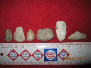 6 SMALL BLADES & THUMB SCRAPERS ( " AZTALAN SITE ", JEFFERSON Co. , WISCONSIN )