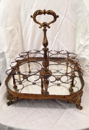 Antique barware bar-tray server tray holder w Mirror Bottom