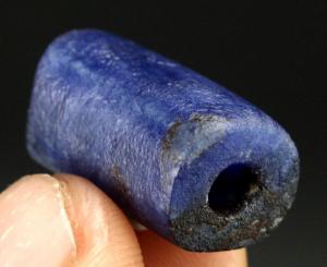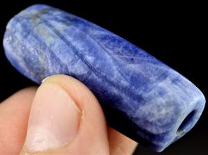 222) Ancient Pre Columbian Tiwanaku Blue Stone Tube Sodalite Bead 19mm