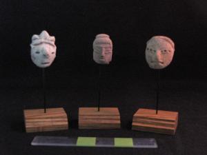 Pre Columbian, Pottery, Three Mounted Head/Facial Shards, E/L Po.Cl. 300 1500 AD