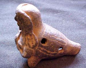 NICE PRE COLUMBIAN BIRD SHAPED WHISTLE APPEARS TO BE WOMAN HOLDING BABY EX COND
