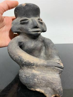 LARGE SEATED PRE COLUMBIAN FIGURE. 5 3/4" TALL