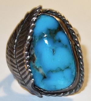 EXCEPTIONALSigned ANTIQUE Native American STERLING TURQUOISE RINGSIZE 7.25