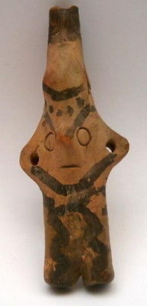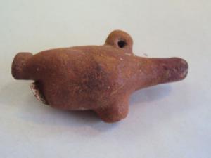 Ancient Pre-Columbian Red Clay Pottery Full Effigy Figure Whistle
