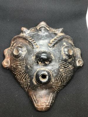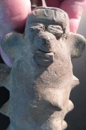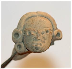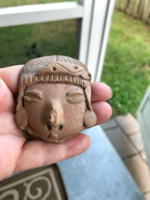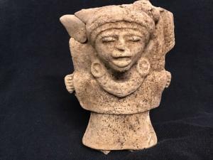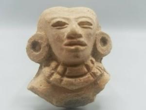 Authentic Pre Historic Pottery Mayan Toltec Olmec Zoomorphic Human Head Idol
