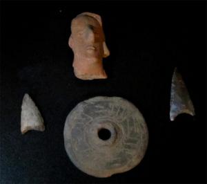 Precolumbian Artifact Collection Pottery Head Stone Points Spindle Whorl 900ad
