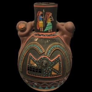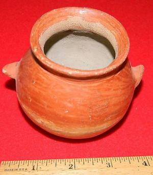 ANCIENT PRE COLUMBIAN STYLE VESSEL WITH INTACT DOUBLE HANDLE