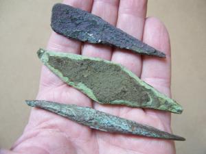 THREE AUTHENTIC OLD COPPER CULTURE ARTIFACTS FROM THE JIM BUSSEY COLLECTION