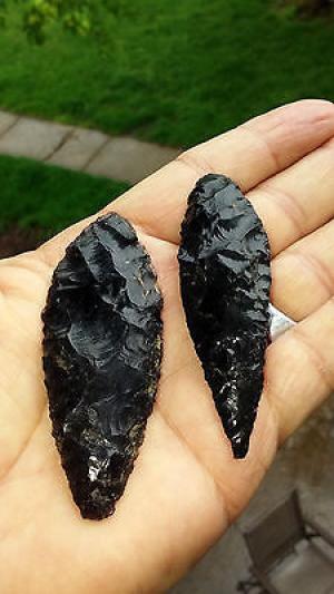 2 Great Mayan Blades Pre Columbian Obsidian Guaranteed AUTHENTIC
