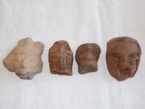 Pre-Columbian Clay Effigy Head Fragment Offerings, Collection of 4