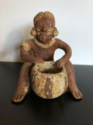 Pre Columbian Nayarit Male Pottery Figure With Bowl