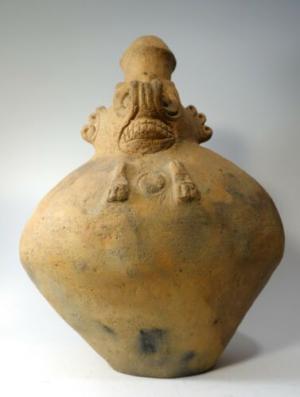 REPRO Pre Columbian 13.5" Pottery Face with Teeth Spout Vessel Pot Jug