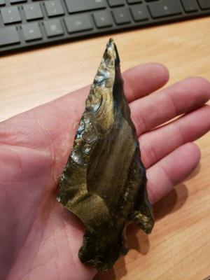 MLC 1294 PRE COLUMBIAN GOLD SHEEN OBSIDIAN SPEAR / ARROWHEAD artifact