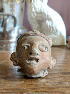 Antique Pre-Columbian Mexican Pottery Head Aztec Mixtec