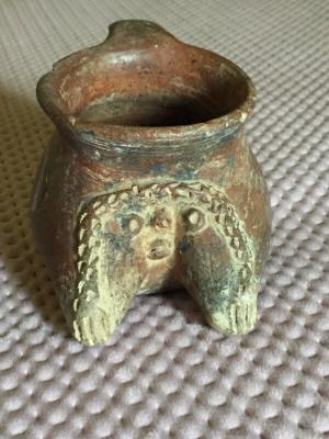 Ancient PRE COLUMBIAN Figural Footed Pottery Water Vessel Vase NO RESERVE
