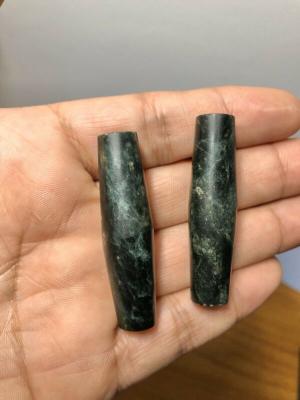 Pre-Columbian, Large Pair Of Deep Green Stone Beads From Mexico