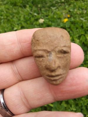 Small Authentic Pre-Columbian Mayan Pottery God Head Shard No Reserve