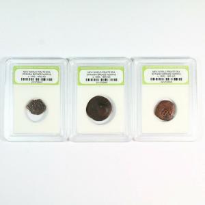 3 Pirate Era - 1600''s Early America Spanish Bronze Cobs Exact Lot Shown 9977