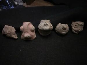5 PCS PRE COLUMBIAN MEXICAN POTTERY ANTIQUITIES OLD HEADS HAND MADE OLD LOT