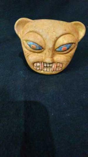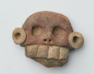 MEXICAN FOLK ART AFTER PRE-COLOMBIAN MAYAN DEATH MASK TERRACOTTA EFFIGY PIPE