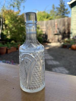 Antique Tooled Top Pontil Base American Cut Glass Miniature WHISKEY BAR BOTTLE