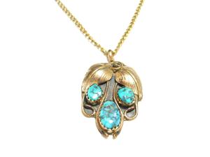 Native American 12K Gold Filled Turquoise Leaf Necklace Signed