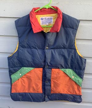 Vintage 1970s 80s CONTENDER Multicolor Goose Down Puffer Vest Mens Large