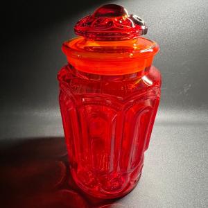 LE Smith Moon And Stars 1134 high red ruby Amberina Glass Canist