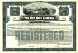 1930's NY Central Railroad gold bond stock certificate Vanderbilt owned company