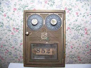 Antique post office box door that is in good condition! Brings back memories