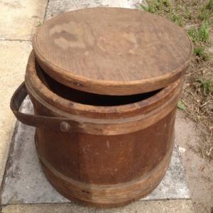 Antique Wood Bucket With Wood Cover