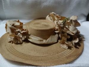 Early Primitive Women's Decorative Hat w/ 2 White Antique Hat Pins