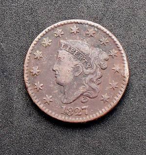 1827 BRAIDED HAIR LARGE CENT - OLD PEICE OF HISTORY