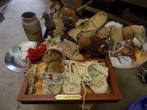TUB of INDIAN antique native american baby shoes booties buckskin ETC