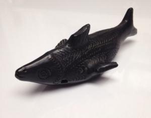 Antique Pre-Columbian Art Pendant Canteen Liquid Vessel Blackware Pottery Fish