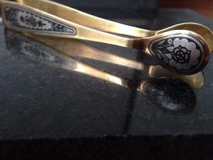 ANTIQUE RUSSIAN STERLING SILVER ((((Severnaya Chern)))) ICE SUGAR CLIPS GOLD PLA