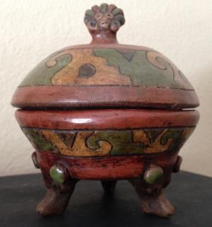 Antique / Vintage Primitive PRE COLUMBIAN ? Lidded Pottery Vessel AZTEC MAYAN ??